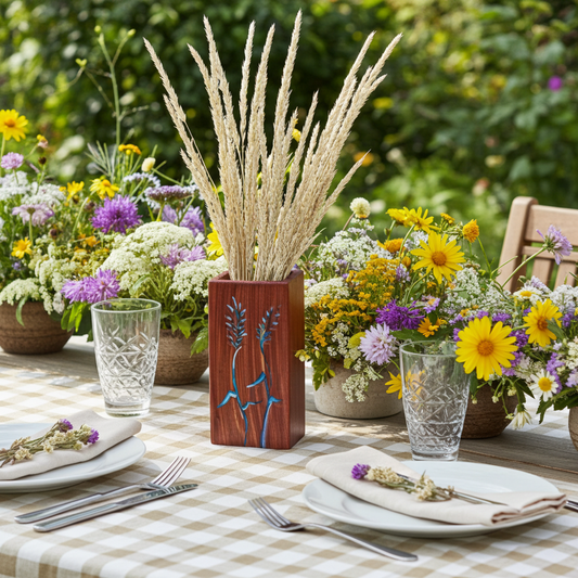 Handmade Cedar Vase for Dried Arrangements, Handpainted Grasses