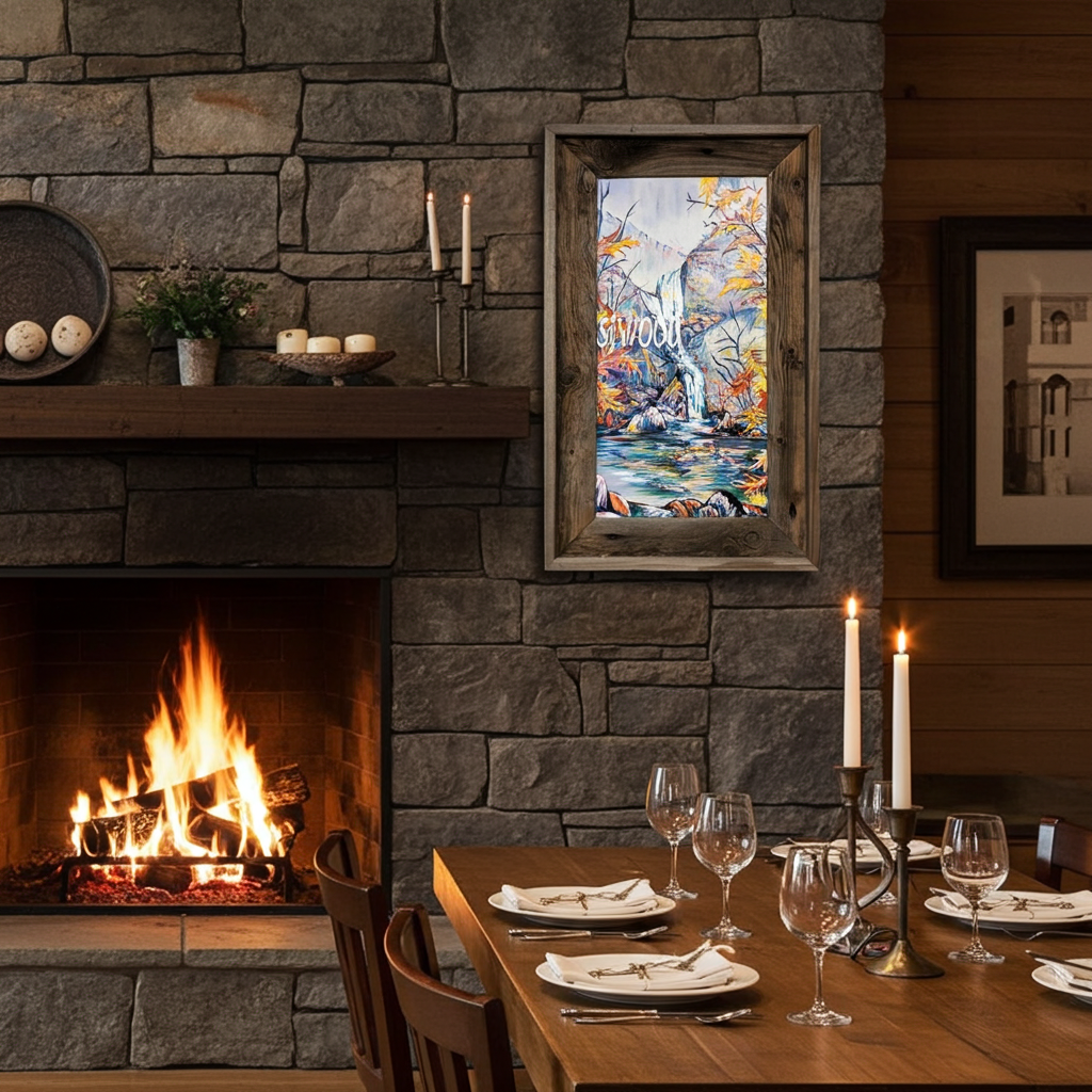 "Autumn Leaves" Signed and Numbered canvas Gallery Wrap Limited Edition Reproduction, framed in authentic barnwood. No glass!: This is also offered in a close to original size gallery wrap 15"x30". Please allow me 2-3 weeks to build these items.