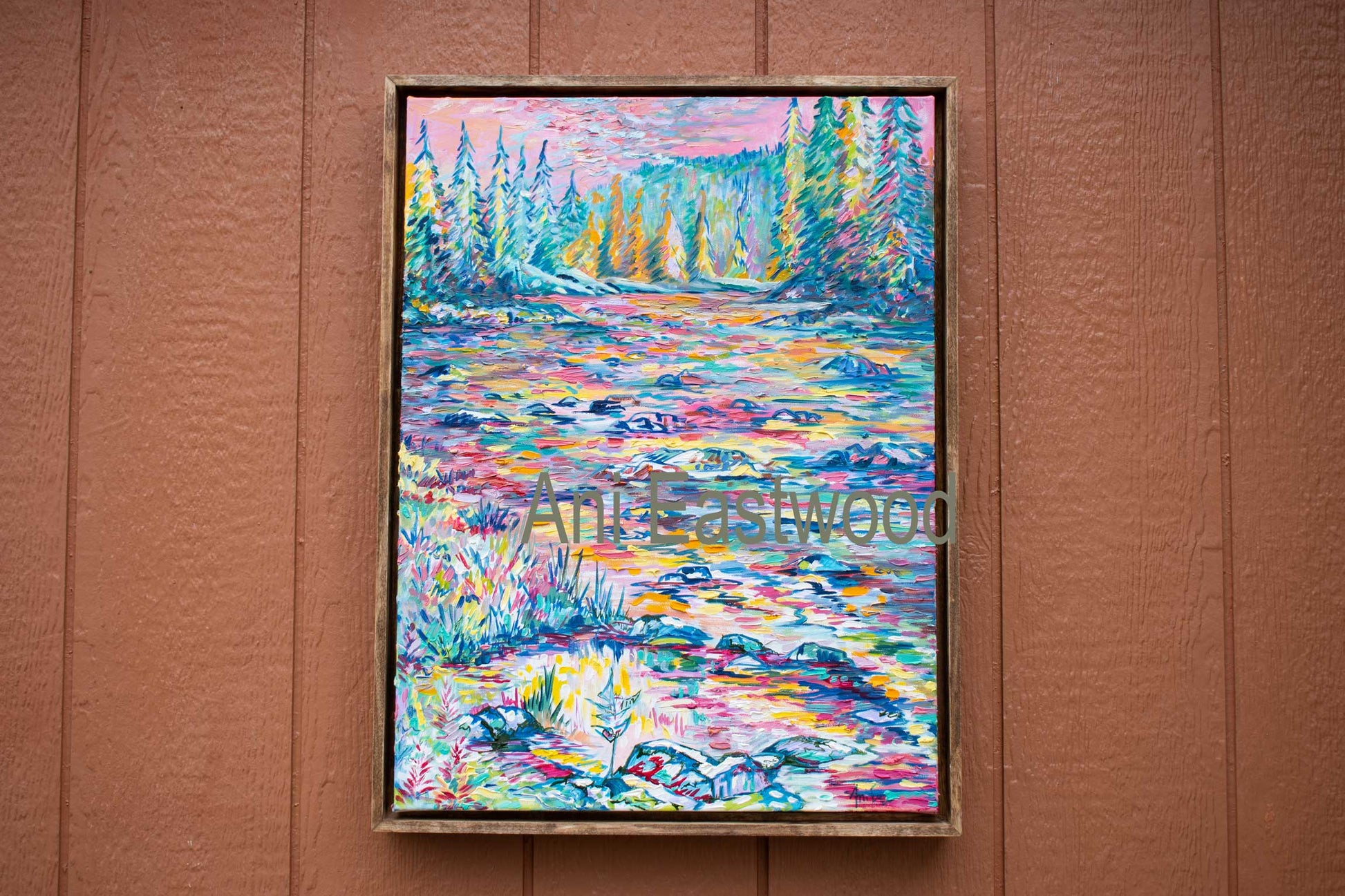 The original oil measures 18"x24" and is in a floating poplar frame.