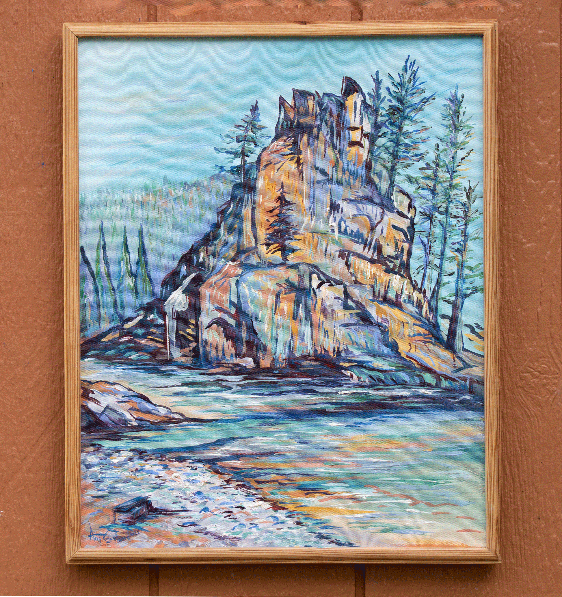 "Cliffs on the Blackfoot River" Original framed in Redwood, Ani Eastwood