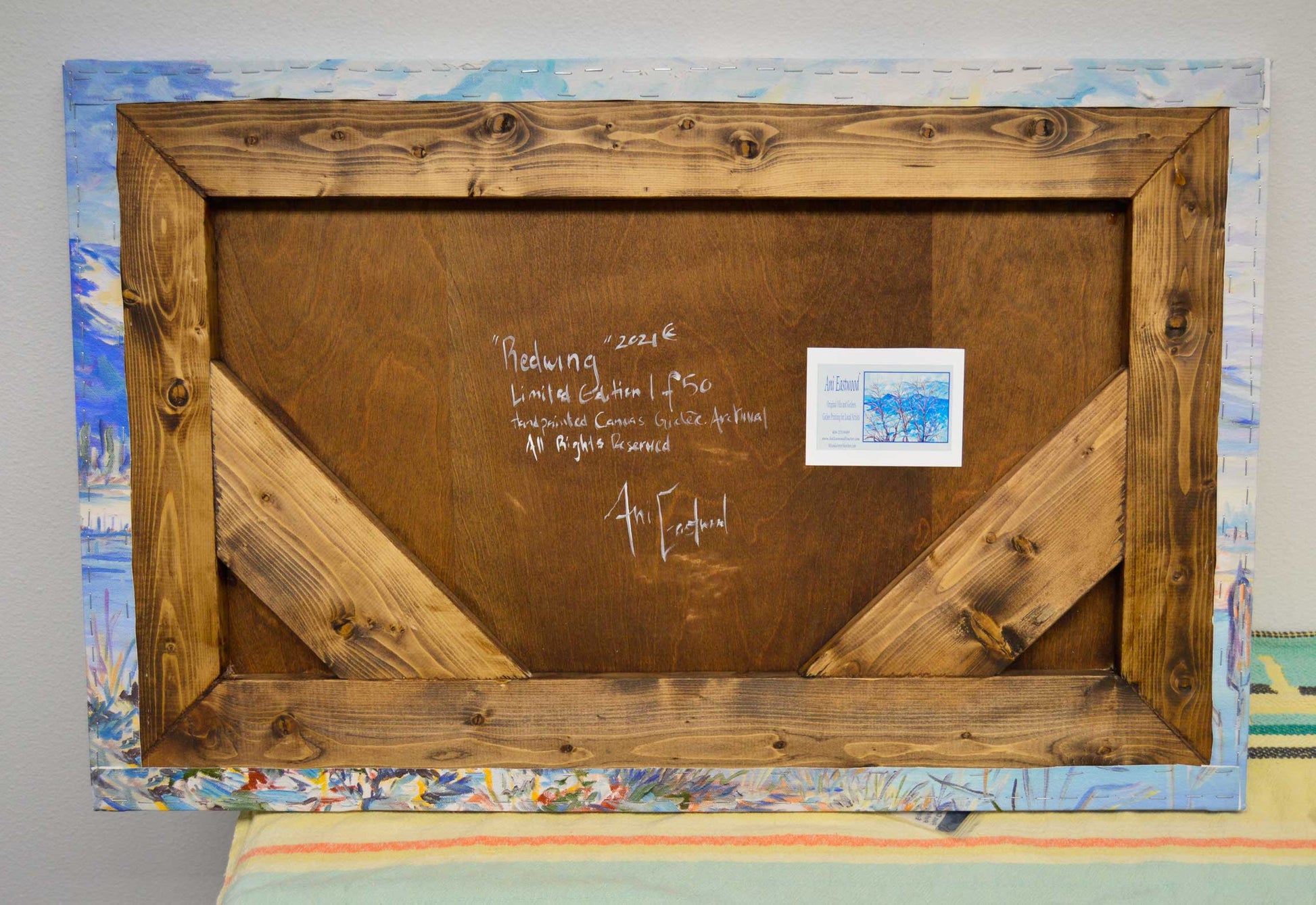 "Redwing" Signed and numbered embellished canvas gallery wrap, wood backed handmade frame: 20"x30" / $570: